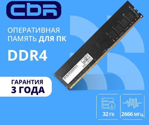 Оперативная память CBR CD4-US32G26M19-00S [DIMM DDR4 32 Гб (1x32 Гб), 2666 MHz, CL-19-19-19]